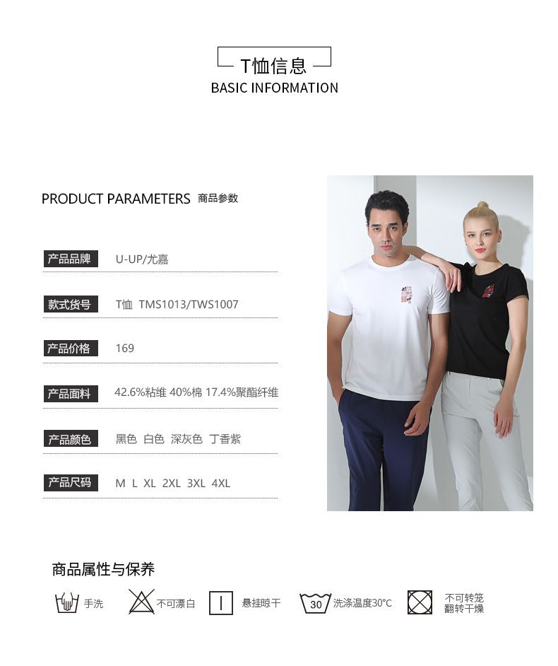u-up/尤嘉户外男女式情侣休闲T恤TMS1013TWS1007