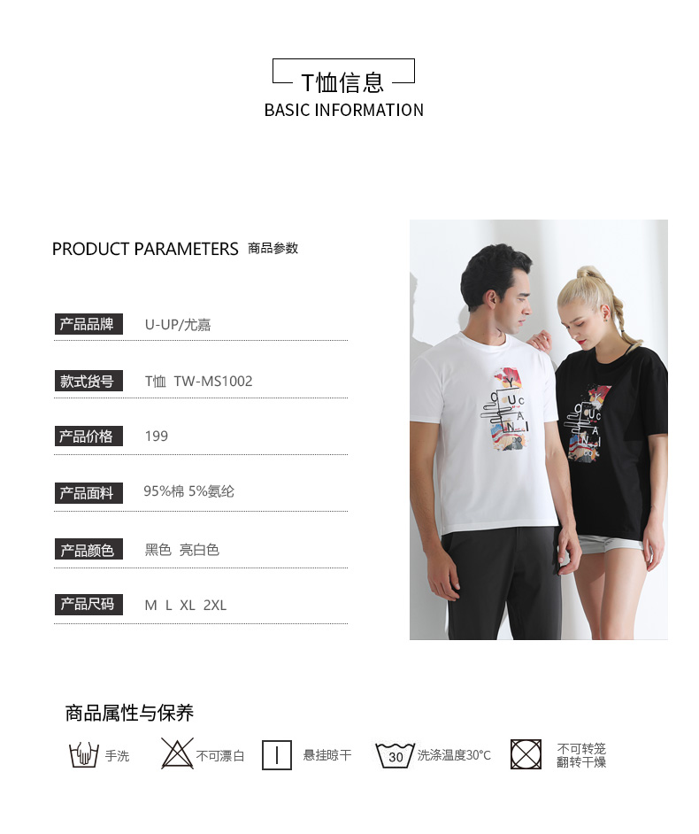 u-up/尤嘉户外男女同款T恤TM-W1002