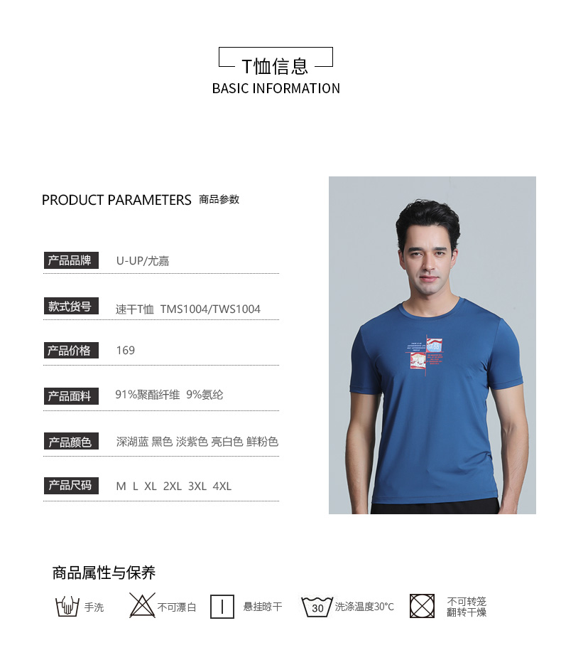 u-up/尤嘉户外男女士情侣速干T恤TMS1004TWS1004