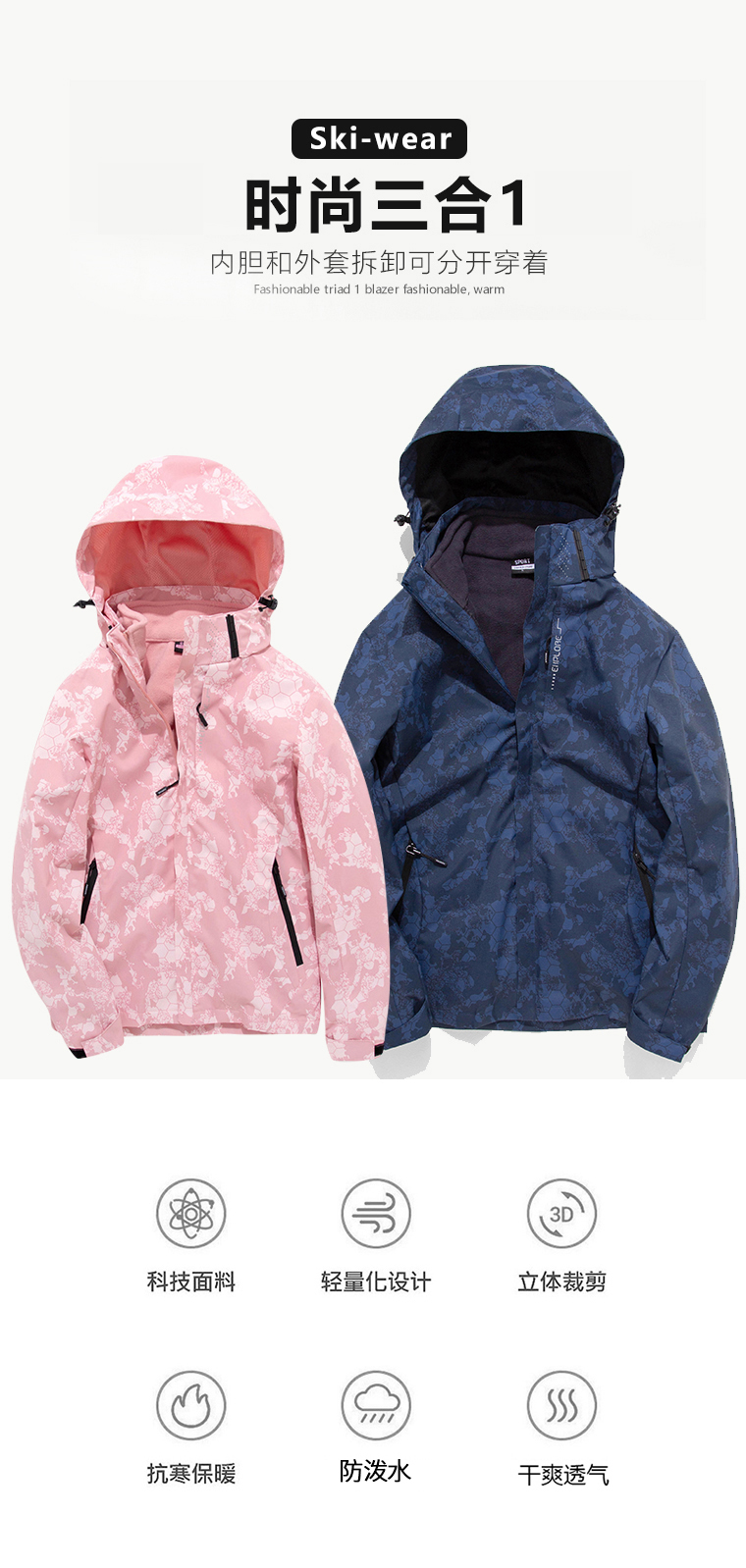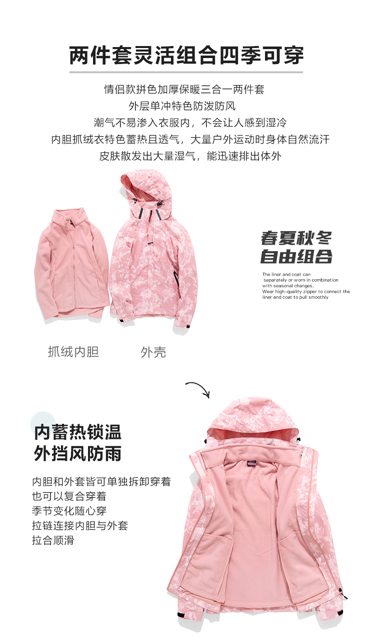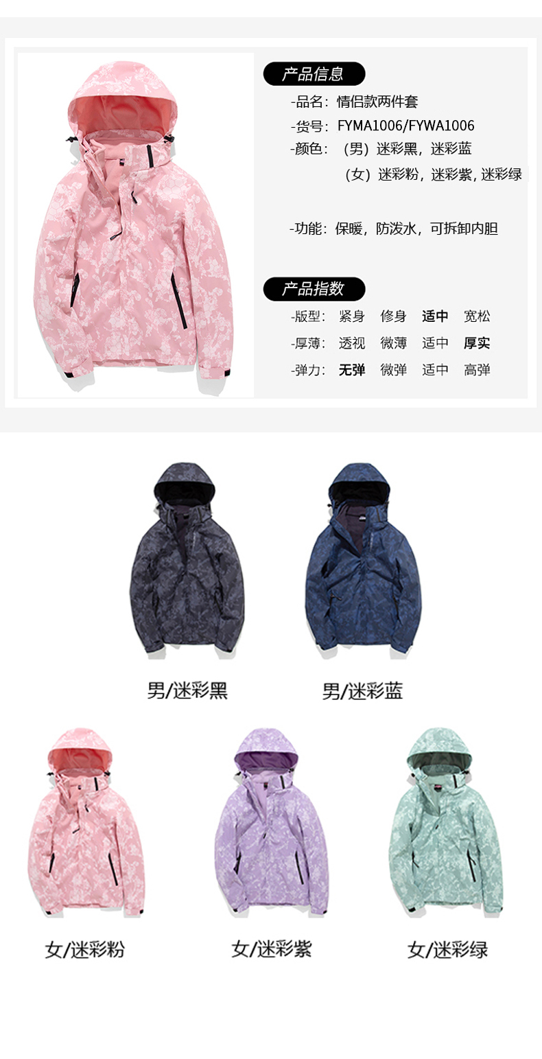 u-up/尤嘉户外情侣三合一FYMA1006&FYWA1006